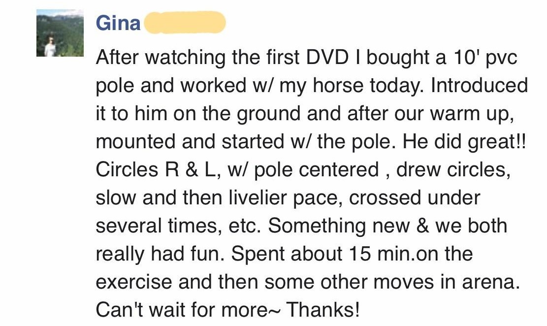 "I have tried the garrocha a few times already, and I was amazed at how well my horse and I seemed to communicate with it. It gave me something to focus on rather than using my reins so much."